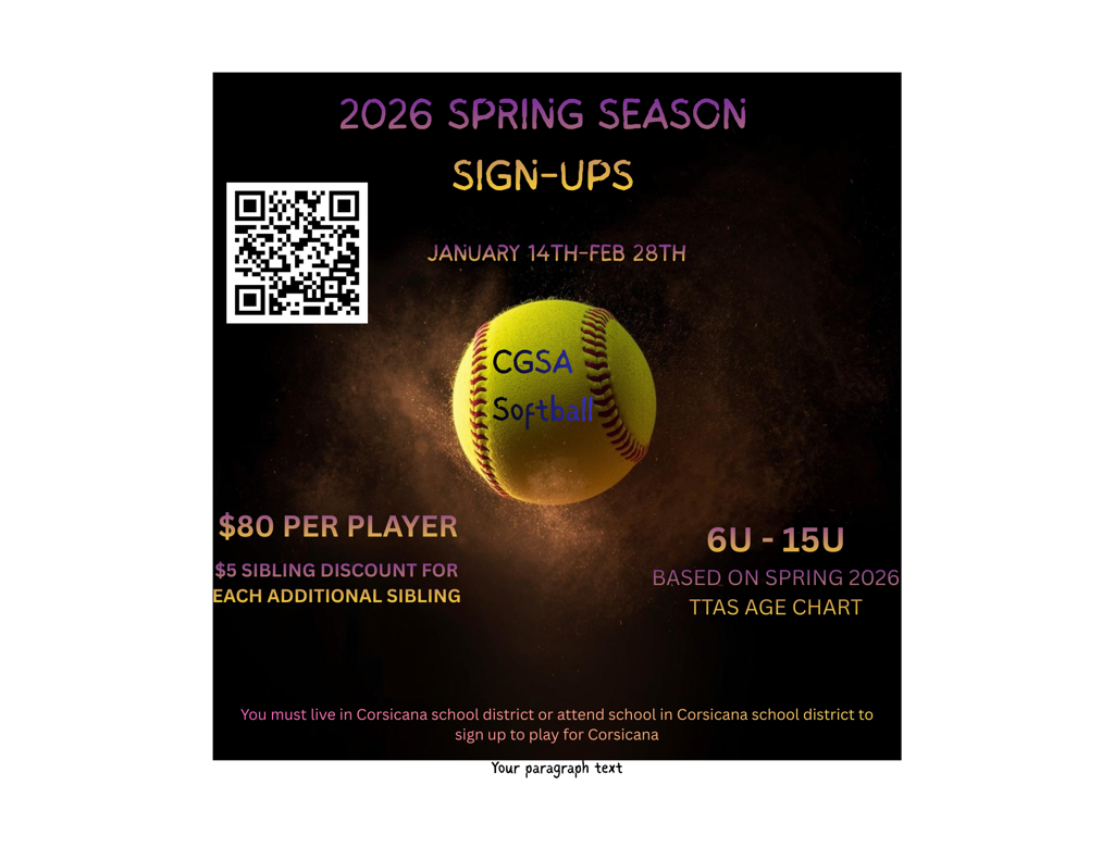 A girls softball league designed to promote the fundamentals of softball beginning at T-Ball and ending at 15 and under. Girls must be 4 years of age by August 31st of the year prior to the season starting.
